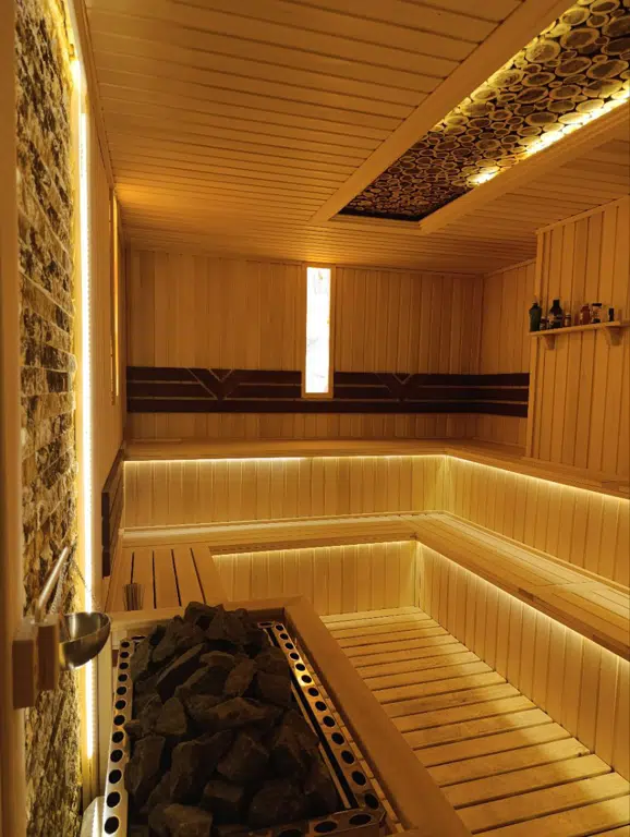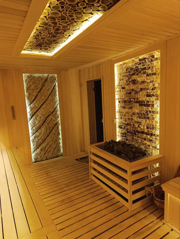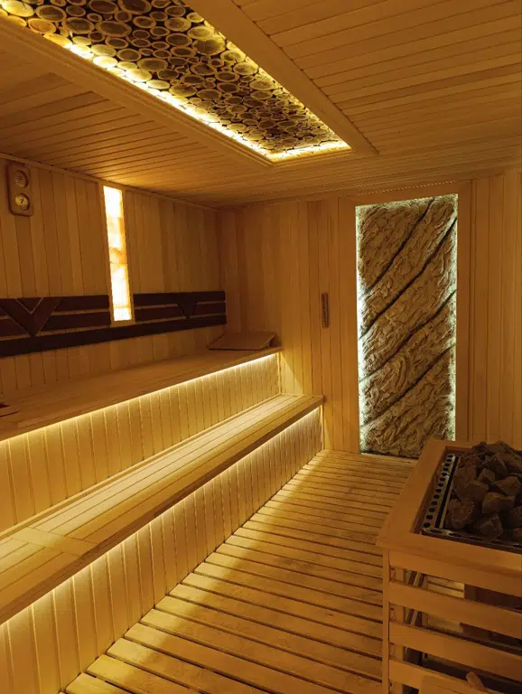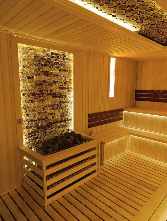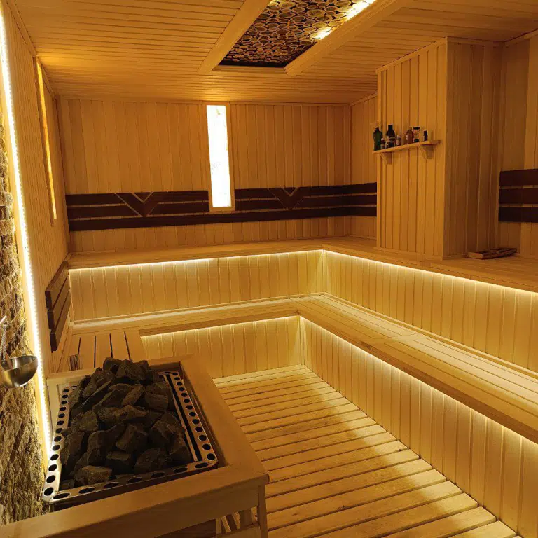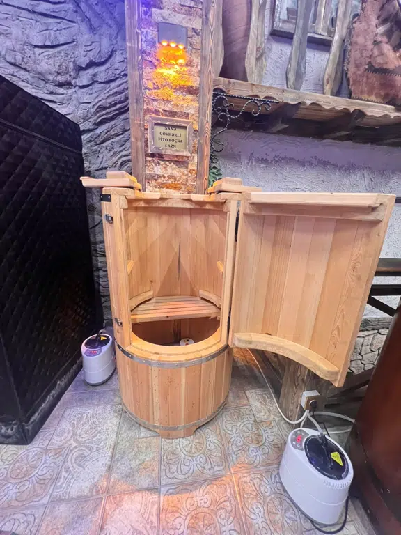 A traditional wooden sauna that provides dry heat for deep relaxation and wellness.
